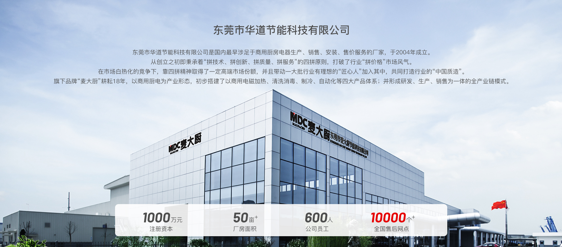 東莞市華道節(jié)能科技有限公司是國內(nèi)最早涉足于商用廚房電器生產(chǎn)、銷售、安裝、售價(jià)服務(wù)的廠家,于2004年成立。 從創(chuàng)立之初即秉承著“拼技術(shù)、拼創(chuàng)新、拼質(zhì)量、拼服務(wù)”的四拼原則,打破了行業(yè)“拼價(jià)格”市場風(fēng)氣,在市場白熱化的競爭下,靠四拼精神取得了一定高端市場份額 并且?guī)?dòng)一大批行業(yè)有理想的“匠心人”加入其中,共同打造行業(yè)的“中國質(zhì)造”。